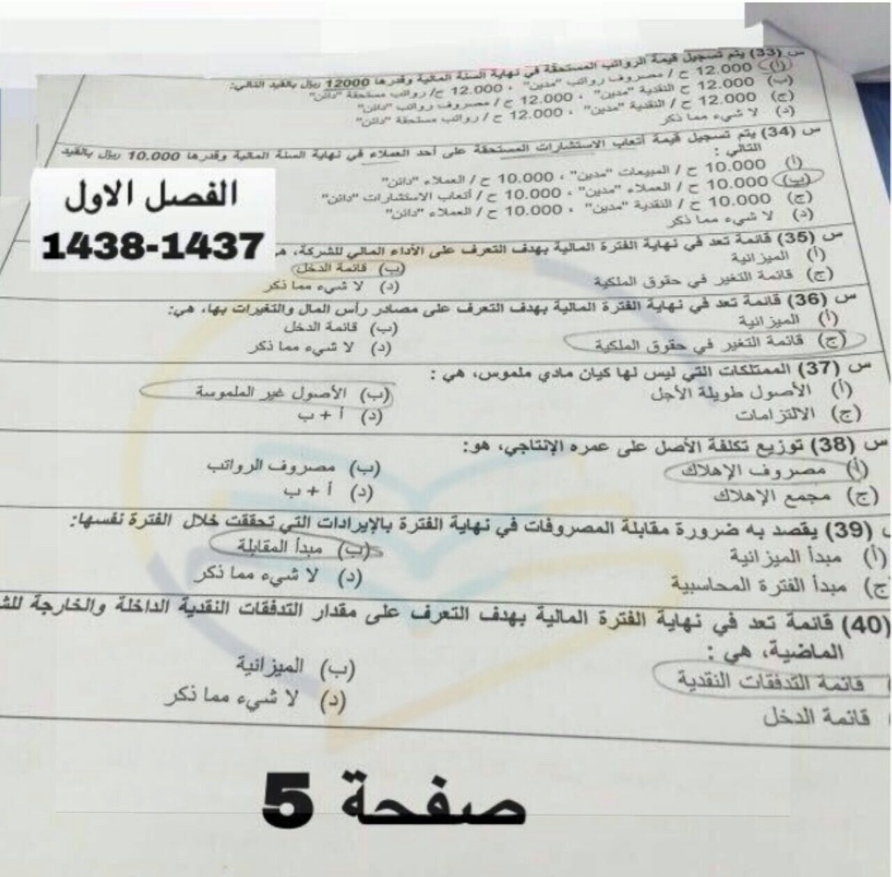 اسئلة اساسيات المحاسبة الإدارية Acc 252 الفصل الأول 1438هـ نموذج أ
